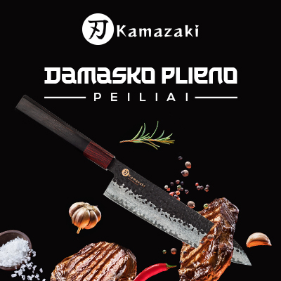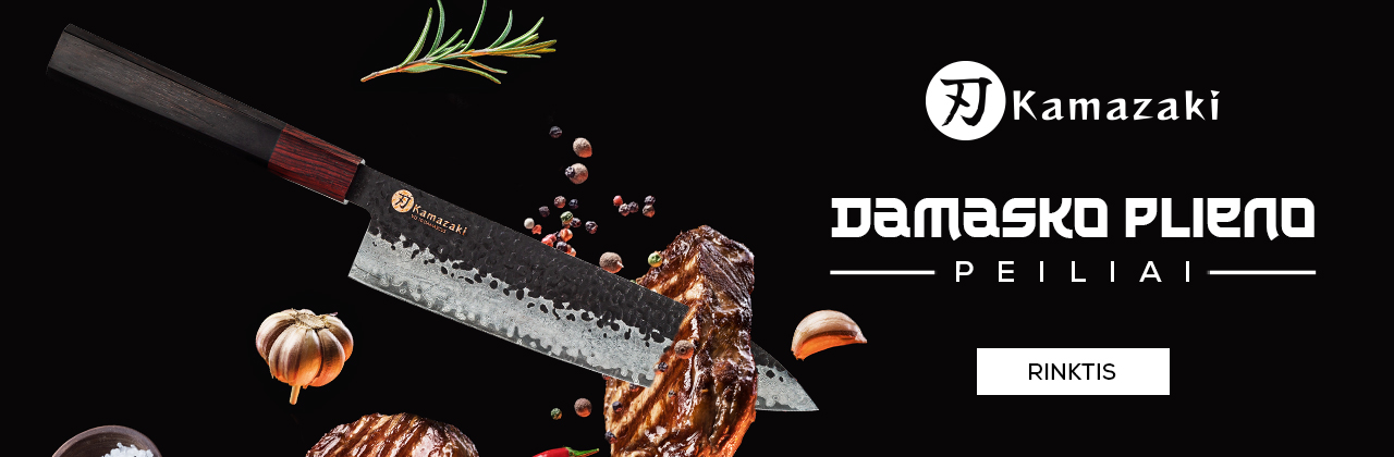 Kamazaki - damasko plieno peiliai!RINKTISAukščiausios kokybės, ypatingai aštrių bei ilgaamžių peilių gamintojas, kurių atsiradimą įkvėpė tūkstantmetės Japonijos kaldinimo tradicijos.