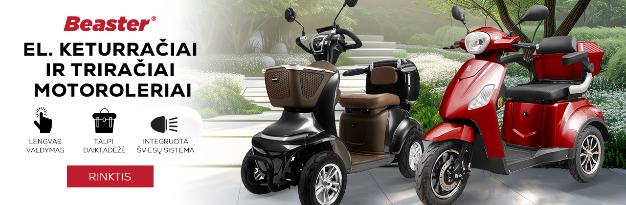 Elektriniai motoroleriai, vežimėliaiRINKTISJudėk patogiai ir lengvai su elektriniai keturračiais, triračiais motoroleriais. Pritaikyta senjorams, neįgaliesiems.