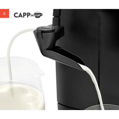 Išskirtinis prietaiso dizainas ir patentuota cikloninė kamera leidžia vienu mygtuko paspaudimu išsiurbti pieną, jį suplakti ir automatiškai supilti į puodelį, šio net nepajudinant iš savo vietos po kavos pylimo snapeliu. Nuo šiol jokio taškymosi ir vien tik nepriekaištingas kapučino kiekvieno ruošimo metu!