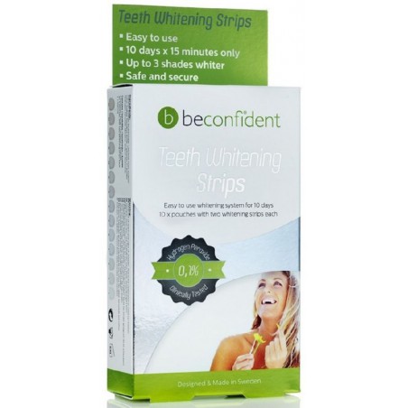 „Beconfident®“ dantų balinimo juostelės yra lengvas ir greitas būdas balinti dantis. Kiekviename voke yra dvi juostelės, kurios yra individualiai sukurtos taip, kad kuo geriau prisitaikytų prie viršutinių ir apatinių dantų. Dantų balinimo gelis esantis juostelėse yra sukurtas su patentuotu „Dual Boost X1“ dantų balinimo geliu su 0,1% peroksido, kuris pirmoje fazėje pašalina spalvos pakitimus, o antroje fazėje padaro baltesnius dantis naudodamas 32% bikarbonato. Juostelės yra visiškai saugios naudoti - nesukelia diskomforto ir nepadidina dantų jautrumo.