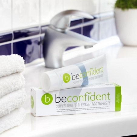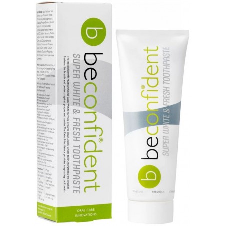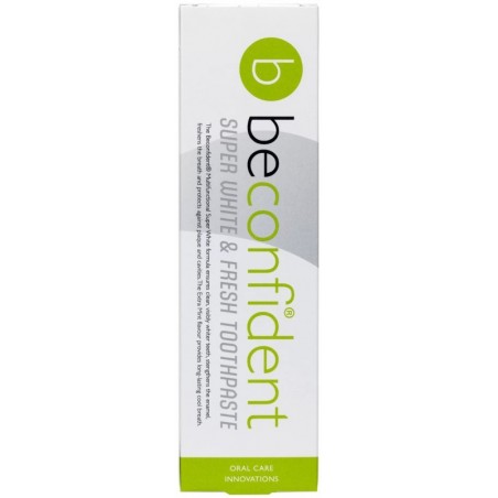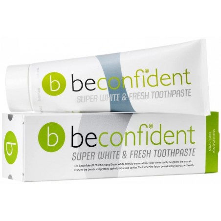Beconfident® „Multifunctional Superwhite & Fresh Toothpaste“ yra balinamoji dantų pasta su ftalimidoperoksikaprono rūgštimi (PAP) ir kalcio peroksidu. Užtikrina švarius, akivaizdžiai baltesnius dantis, stiprina emalį, užtikrina gaivų burnos kvapą, saugo nuo apnašų ir ėduonies.