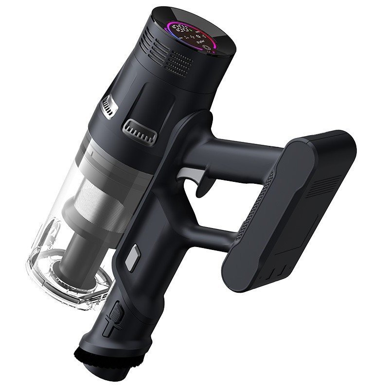 Viršuje prietaiso esantis spalvotas LCD ekranas lesi patogiai matyti pasirinkto siurbimo režimą, įkrovos lygi procentais, bei šepetėlio ar įsiurbimo kanalo užsikimšimą.