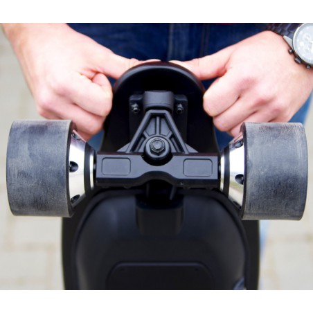 Šią elektrinę riedlentę galėsite valdyti itin paprastai ir intuityviai – lenta važiavimo metu natūraliai lankstosi į visas puses, o aukštos kokybės ratukai ir guoliai leidžia mėgautis važiavimu visos kelionės mieste metu.