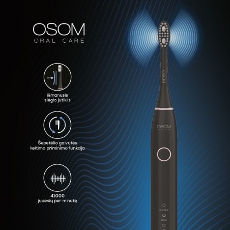 Įkraunamas, elektrinis, garsinis dantų šepetėlis OSOM Oral Care Sonic Electric Toothbrush Black OSOMORALV10BL, juodos spalvos
