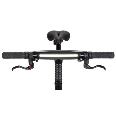 Šis modernus dviratis turi tarp rankenų integruotą priekinį dieninį žibintą, kad visuomet būtumėte matomi kelyje ir važiuotumėte laikydamiesi visų eismo taisyklių.