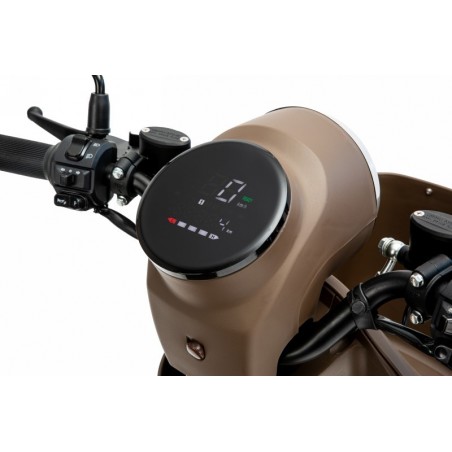 - LCD skydelis – važiavimo greitis, nuvažiuotas atstumas, baterijos įkrovos lygis;