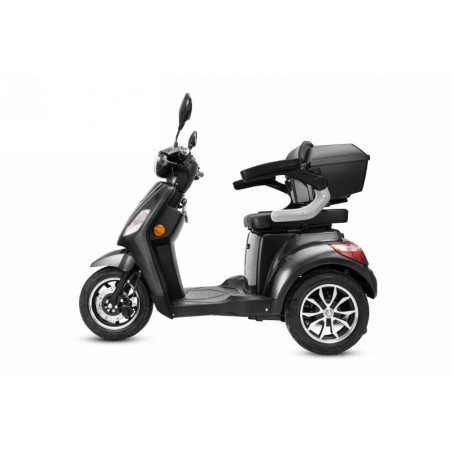 Elektrinio motorolerio trys važiuoklės ratai garantuoja itin gerą transporto priemonės stabilumą net staigiuose posūkiuose lyginant su įprastais dviračiais motoroleriais ar paspirtukais.