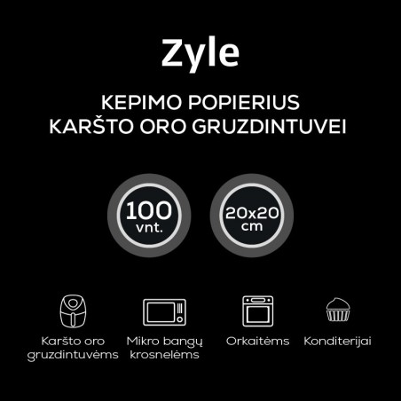 Nuo šiol išvalyti karšto oro gruzdintuvę po maisto ruošimo bus daug lengviau, kadangi naudojant šį „Zyle“ kepimo popierių, ruošiamas maistas neprilips prie karšto oro gruzdintuvės kepimo krepšelių paviršiaus.