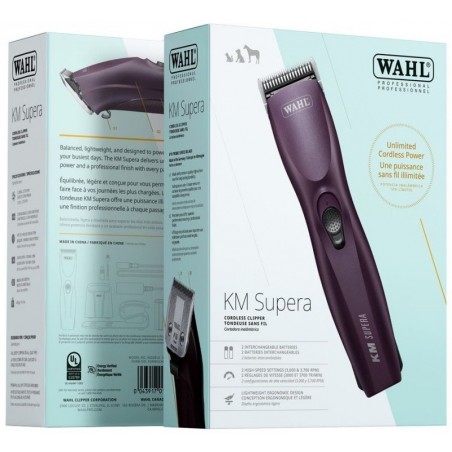 WAHL Professional Animal „KM Supera“ – tai patikimas ir efektyvus įrankis, skirtas profesionaliems šunų ir kačių kirpėjams bei veterinarijos specialistams. Dviejų greičių funkcija leidžia pritaikyti darbą pagal augintinio poreikius. Komplekte yra dvi keičiamos ličio jonų baterijos, užtikrinančios iki 180 min. veikimo laiką be pertraukų, o LED indikatorius leidžia lengvai stebėti įkrovos lygį. Tuo tarpu aukštos kokybės aukšto anglies plieno peiliukų sistema (#10, 1,5 mm) užtikrina tikslų ir profesionalų rezultatą.
