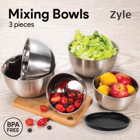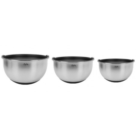 Zyle „ZY191MB“ rinkinį sudaro 3 skirtingo dydžio nerūdijančio plieno dubenėliai. Jų apačia yra gumuota, todėl dubenėliai nenuslys nuo bet kurio paviršiaus ir bus patogūs naudoti. Kiekvienas dubenėlis turi plastikinį dangtelį. Be BPA.