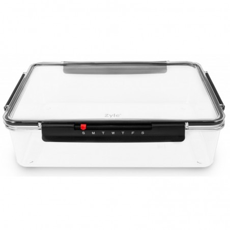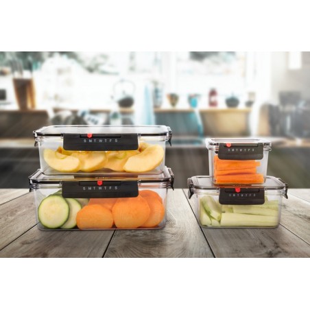 - Dėžutės dangtelyje esantis slankiojantis savaitės kalendorius leis pažymėti kada maistas buvo pagamintas ir leis sekti maisto laikymo laiką šaldytuve.