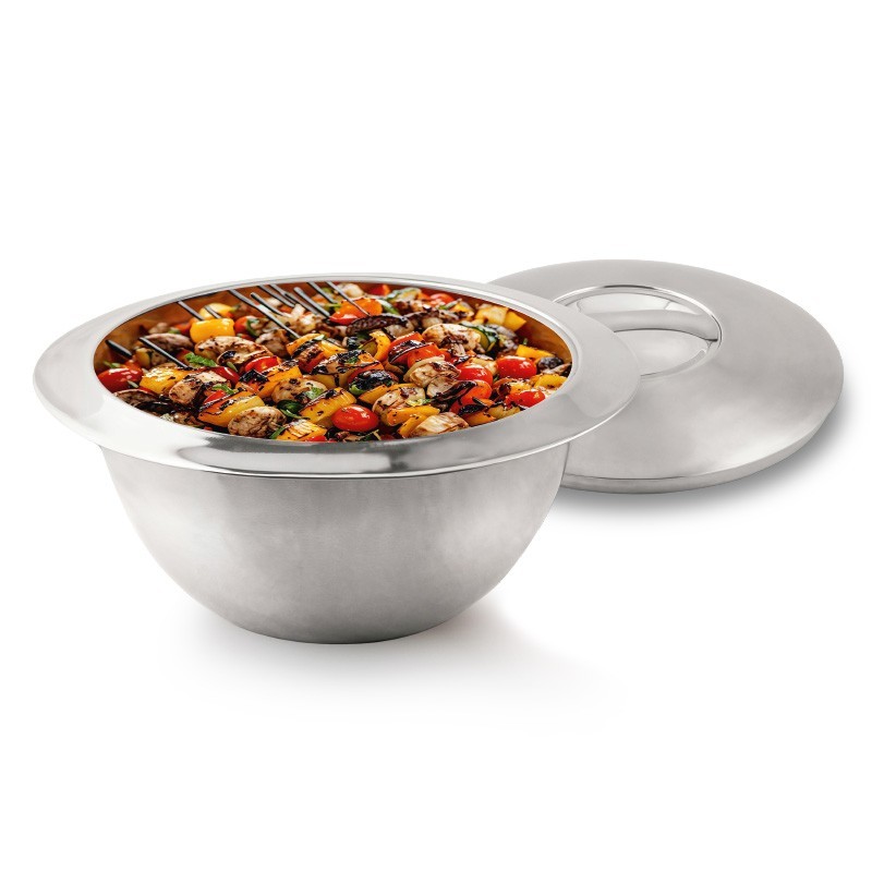 Šis dvigubų sienelių termo dubenėlis Zyle, puikiai išlaiko karštį ar šaltį ruošiant įvairius patiekalus, ar patiekiant ant stalo. Patiekite karštus patiekalus, po valandos jie bus kaip ką tik paruošti. Išlaikykite maistą šviežią ir vėsų dar ilgiau, dėka dvigubų indo sienelių ir nerūdijančio plieno dangčio. Tinka maisto laikymui, serviravimui, transportavimui.