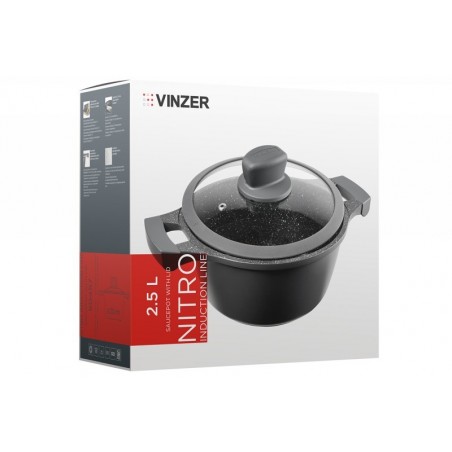 Indukcinis puodas su dangčiu Vinzer „Nitro“ yra pagamintas iš lieto aliuminio, o jo vidus padengtas nesvylančia ir nelimpančia trisluoksne „Greblon C3“ danga. Ši danga yra labiau atsparesnė įbrėžimams, lyginant su kitomis dangomis, todėl ji naudojama tik aukščiausios kokybės indams gaminti. Ergonomiška indukcinio puodo rankena yra pagaminta iš bakelito, kuri kepimo metu neįkaista ir neslysta rankoje, kas užtikrina patogų naudojimą bei malonią maisto gaminimo patirtį.
