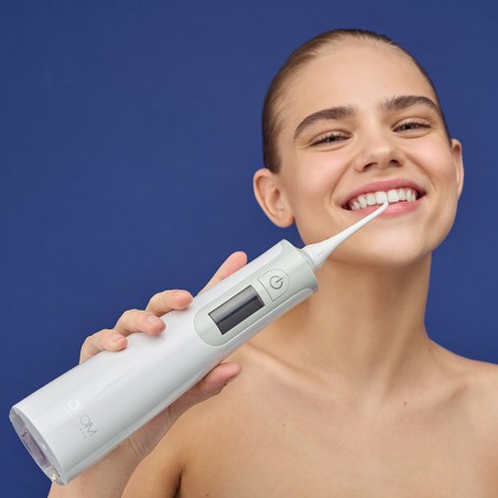 OSOM Oral Care „Mint“ burnos irigatorius vandens srove pašalina maisto likučius iš tarpdančių. Tai puiki alternatyva tarpdančių siūlui. Prižiūrėkite savo dantis ir dantenas žymiai paprasčiau ir efektyviau su šiuo aukštos kokybės burnos irigatoriumi. Tai taip pat nepamainomas prietaisas norint tinkamai prižiūrėti breketus.