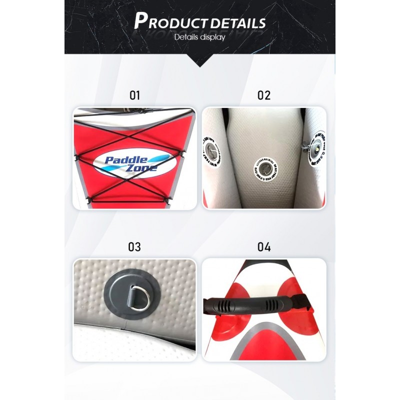 Patogi ir tvirta nešimo rankena, elastiniai diržai patogiam daiktų pritvirtinimui, D formos žiedai sėdynėms pritvirtinti, priekinis atšvaitas saugumui tamsesniu paros metu, aukštos kokybės oro pripūtimo/išleidimo vožtuvas, tai viskas ko reikia saugiam ir patogiam plaukiojimui vandenyje.