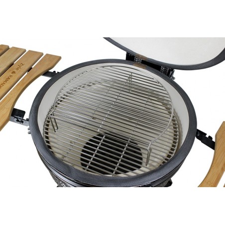 Su šiuo naujo dizaino „Zyle“ Kamado griliumi pasigaminsite puikiai apskrudusius, minkštus ir sultingus mėsos kepsnius, gardžias žuvis, sočius troškinius, picas bei nepaprasto skonio desertus. Grilis abiejose pusėse turi susilankstančias lentynas, kuriose bus patogu susidėti reikiamus ingredientus. Su šiuo griliumi galėsite ne tik kepti, bet skrudinti ir rūkyti įvairius gaminius, o vienu metu galėsite pasigaminti net kelias vakarienes. Grilis turi pelenų išėmimo stalčiuką, kuris padės patogiai iš grilio išimti pelenus.