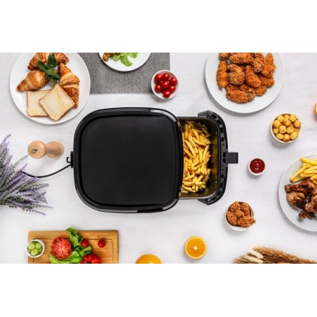 Greitas karšto oro pasiskirstymas gruzdintuvėje užtikrina greitą ir tolygų maisto iškepimą. Dėl skirtingų temperatūros nustatymų, Jūs galėsite gaminti pasirinkę tokią temperatūrą, kuri yra reikalinga Jūsų ruošiamam patiekalui. Be to, gruzdintuvė turi iki 30 min. laikmačio funkciją, kas leidžia prietaisui automatiškai išsijungti kai maistas jau yra paruoštas.