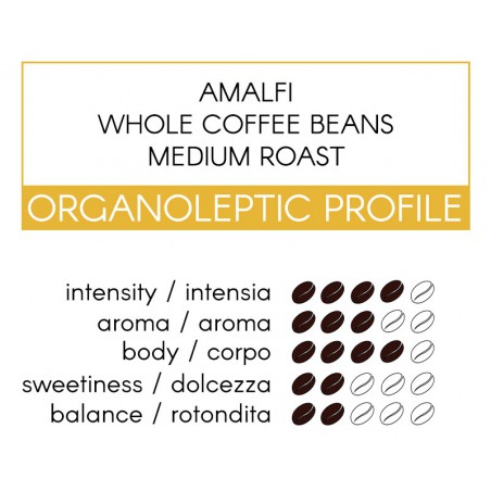 Tai aukščiausios kokybės itališka kava. „Amalfi“ kavos pupelės yra vidutinio skrudinimo ir didesnio nei vidutinio intensyvumo. Kava pasižymi intensyviu ir stipriu skoniu su pikantiškomis natomis. „Amalfi“ patiks tiems, kurie mėgsta energizuojančią, išskirtinio skonio ir aromato kavą. Supakuota patogioje 500 g. pakuotėje, kuri išsaugo kavos aromatą.