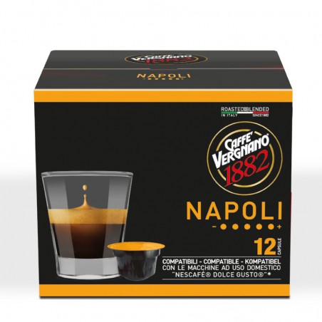 Tai aukščiausios kokybės itališka kava kapsulėmis iš „Arabica“ ir „Robusta“ pupelių. „Napoli“ kava pasižymi stipriu, akcentuotu, ilgai išliekančiu skoniu su pikantiškomis natomis ir truputėliu kartumo. Aukštas kavos intensyvumas. Supakuota naudojant apsaugines dujas. Pakuotėje yra 12 kapsulių. Tinka Nescafe® Dolce Gusto® kapsuliniams kavos aparatams.