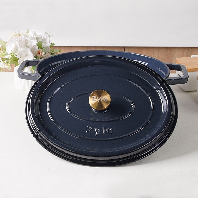 Ovalus emaliuotas ketaus puodas Zyle ZY040DGKI, pilkas, 7,8 l