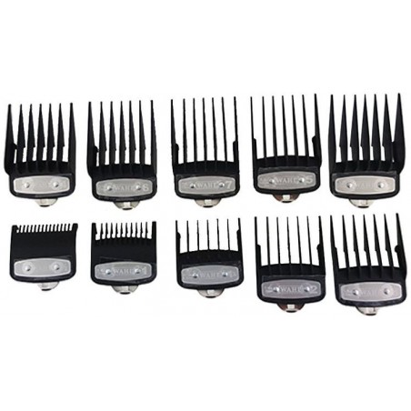 Šukos pagamintos iš tvirto plastiko ir lengvai pridedamos prie kirpimo mašinėlių. Komplektą sudaro 10 skirtingo dydžio šukų: 1,5 mm/3 mm/4,5 mm/6 mm/ 10 mm/13 mm/16 mm/19 mm/22 mm/25 mm arba nuo #1/2 iki #8.