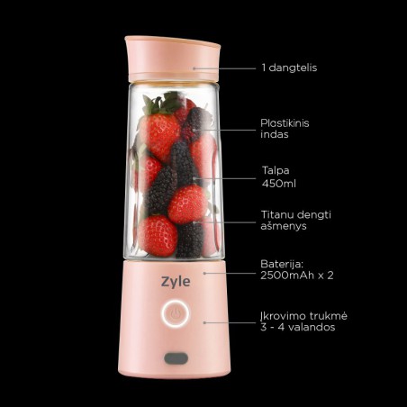 Įkraunama, nešiojama kokteilinė su titanu dengtais ašmenimis Zyle, ZY015RBP, rožinės spalvos