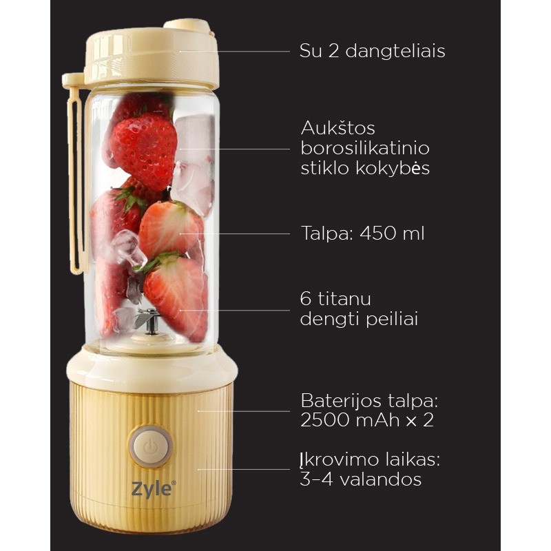 Visi svajojame apie gardžius ir sveikus glotnučius, tačiau dėl kietų maisto produktų gali būti sunku išgauti tobulą gėrimo konsistenciją. Dėl šios priežasties ir buvo sukurta „Zyle“ kokteilinė su titanu padengtais ašmenimis. Ji efektyviai sutrina ir susmulkina įvairius ingredientus, ledukus bei šaldytus vaisius, kad Jūsų paruošti gėrimai būtų tobulo skonio.