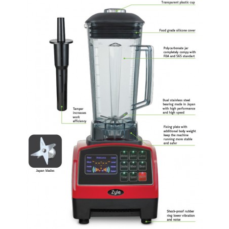 Zyle profesionalus maisto smulkintuvas - kokteilinė su japoniško plieno peiliais ZY858BL, 2 l, 2200 W