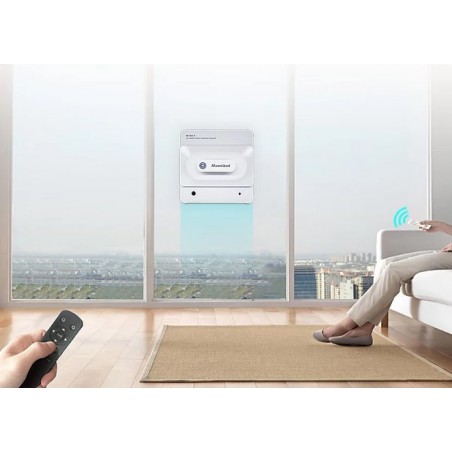 Valdykite langų valymo robotą trimis būdais ir rinkitės jums patogiausią: mobiliąja aplikacija, mygtuku arba valdymo pulteliu.