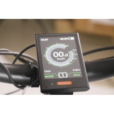 Elektrinis dviratis turi patogų ir ypač informatyvų ekranėlį, kuriame visuomet važiavimo metu galėsite matyti ir sekti savo važiavimo greitį, nuvažiuotą atstumą, el. dviračio mynimo pagalbos lygį bei baterijos įkrovą. Taip pat galėsite matyti nustatyto likusio atstumo, maksimalaus, vidutinio greičio bei kitus parametrus.