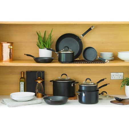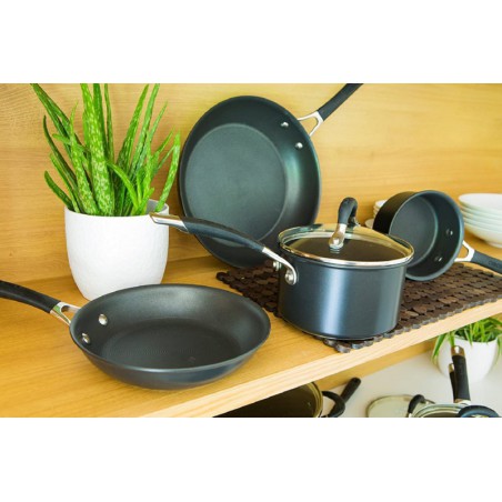 Maisto gaminimas dar niekada nebuvo toks greitas! "Total non stick“ - neprilimpančio maisto technologija, kuri užtikrina nepriekaištingą maistą iš pirmo karto. Keptuvė pagaminta iš anodo aliuminio, todėl karštis paskirstomas ne tik keptuvės centre, bet ir sienelėse.
