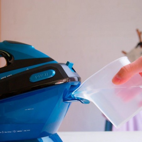 Didelės talpos – 1,5 l – vandens bakelis leidžia lyginti ilgesnį laiką be papildymo. Dėl „Non-Stop System“ sistemos galite papildyti vandenį bet kada, neišjungdami įrenginio. Lygintuvas taip pat puikiai tinka vertikaliam garinimui – idealiai tinka kostiumams, užuolaidoms ar kitiems pakabintiems audiniams.
