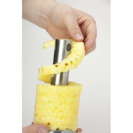 Tvirta ananaso pjaustyklė pagaminta iš aukščiausios kokybės nerūdijančio plieno leis jums lengvai ir taisyklingai supjaustyti ananasą ir pašalinti visus nepageidaujamus sukietėjimus.