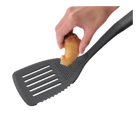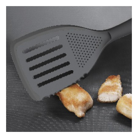 Silikoninė mentelės Zyle „ZY15GSP“ krašto dalis nesubraižys keptuvės dangos net ją gramdant, tuo tarpu kitame krašte esantys dantukai padės susmulkinti maistą. Be viso to, mentelėje yra įtaisyti ypač praktiški grioveliai, skirti česnako, imbiero ar kitų produktų tarkavimui.