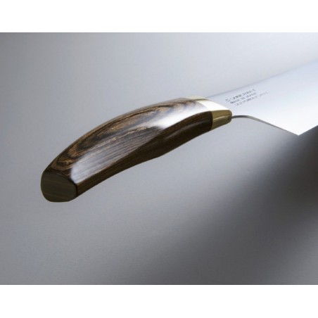 • Šefo peilis „Elegancia Chef“ dėl savo išlenkimo puikiai tiks ne tik mėsos pjaustymui, bet ir žolelių, daržovių ar net riešutų smulkinimui. Ilgi ašmenys ir vakarietiško stiliaus rankena suteiksi jums visišką kontrolę pjaustymo metu. Japoniškas menas, tikslumas ir naujos technologijos padaro šį peilį unikaliu ir nepakartojamu.