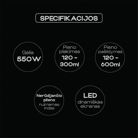 Pieno šildymas: gali šildyti iki 600 ml pieno – tai itin patogu ruošiant didesnes porcijas karštų gėrimų, tokių kaip kakava ar pieno arbata.