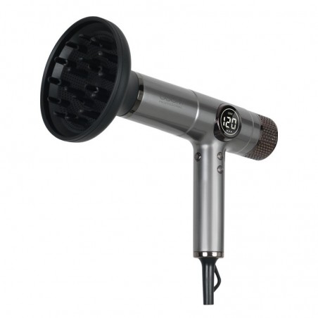 Šis plaukų džiovintuvas turi didelės raiškos LCD ekraną, kuriame visuomet galima matyti esamą oro srauto temperatūrą bei greitį.