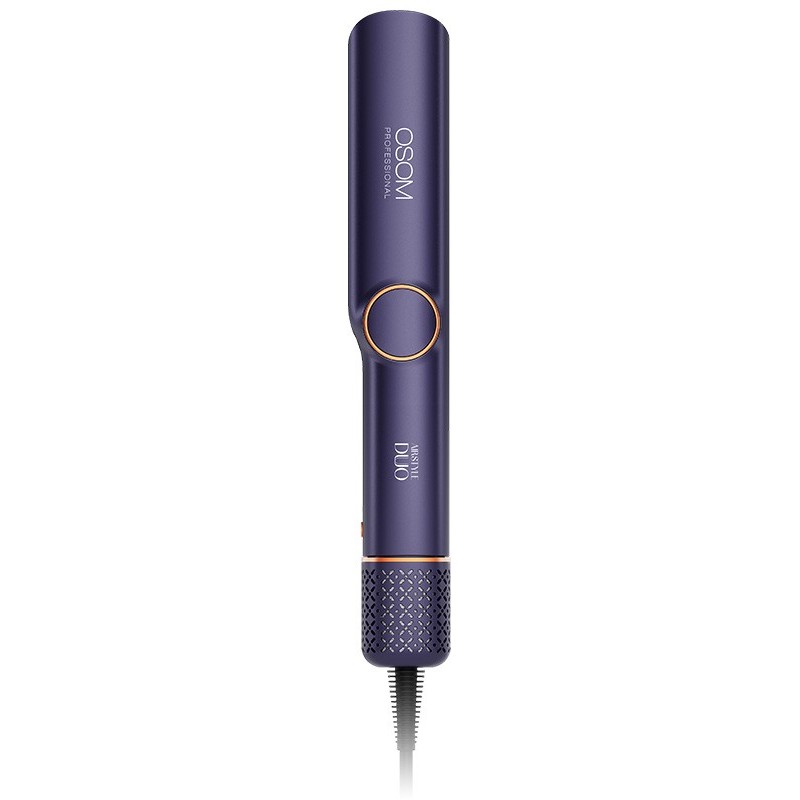 OSOM Professional „Airstyle Duo“ – tai pažangus džiovintuvas-formuotuvas, sukurtas tiems, kurie vertina greitį, preciziškumą ir nepriekaištingą stilių. Šis naujos kartos įrankis su didelės spartos BLDC tipo varikliu leidžia vos vienu veiksmu pereiti nuo šlapių plaukų iki išdžiovintos ir suformuotos šukuosenos. Prietaisas veikia be kaitinamų plokštelių – vietoje jų pasitelkiamos dvi didelio greičio oro srovės, sklindančios 45° kampu. Tokia technologija leidžia pasiekti tolygų šilumos paskirstymą per visą plaukų ilgį, todėl plaukai formuojami be itin aukštos temperatūros poreikio.