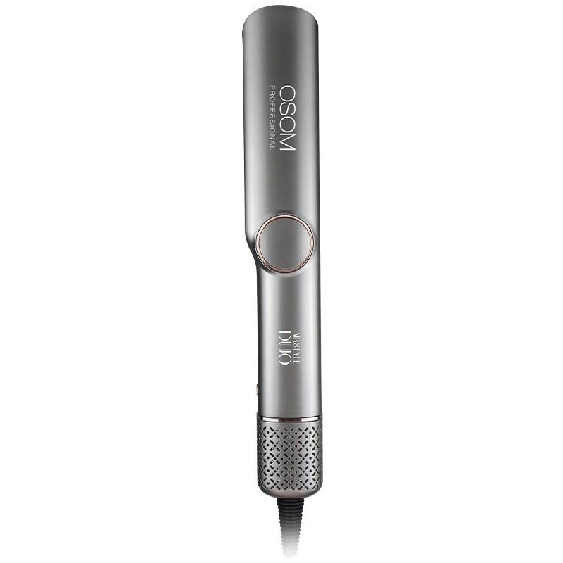 OSOM Professional „Airstyle Duo“ – tai pažangus džiovintuvas-formuotuvas, sukurtas tiems, kurie vertina greitį, preciziškumą ir nepriekaištingą stilių. Šis naujos kartos įrankis su didelės spartos BLDC tipo varikliu leidžia vos vienu veiksmu pereiti nuo šlapių plaukų iki išdžiovintos ir suformuotos šukuosenos. Prietaisas veikia be kaitinamų plokštelių – vietoje jų pasitelkiamos dvi didelio greičio oro srovės, sklindančios 45° kampu. Tokia technologija leidžia pasiekti tolygų šilumos paskirstymą per visą plaukų ilgį, todėl plaukai formuojami be itin aukštos temperatūros poreikio.