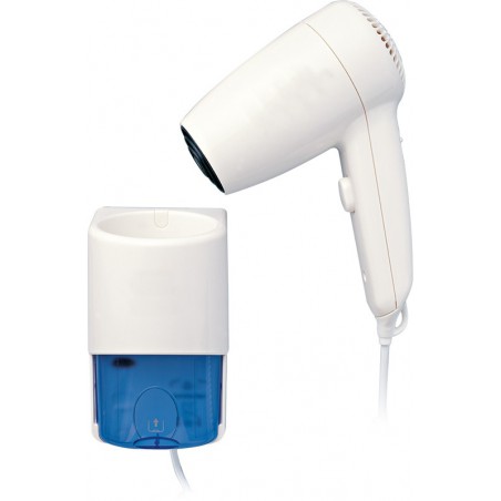 Šis sieninis plaukų džiovintuvas - patogus sprendimas viešbučiams, sporto klubams, baseinams, spa centrams. Džiovintuvas turi įjungimo mygtuką bei reguliuojamą 2 padėčių oro srauto greitį. Ant sienos tvirtinamas džiovintuvo laikiklis po pakeliamu apsauginiu dangteliu turi maitinimo lizdus barzdaskutei.