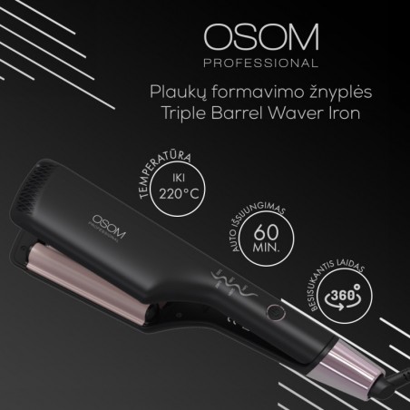 Plaukų formavimo žnyplės Osom Professional Triple Barrel Waver Iron OSOM8703, 88 W, 140 – 220°C