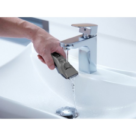 Uždėkite antgalį ir nustatykite norimą ilgį. Patogu naudoti plaukams apie ausis ir ant sprando trumpinti. Vandeniui nepralaidus korpusas suteikia galimybę išskalauti kirpiklį po tekančiu vandeniu, todėl jį lengva higieniškai prižiūrėti. Pastaba. Prieš plaudami nuimkite išorinę galvutę ir įjunkite barzdaskutę. Vibracija padeda išpurtyti plaukų likučius. Naudokite prietaisą tiek su laidu, tiek be jo. Įkrautą kirpimo mašinėlę galima naudoti duše arba kelionėje.