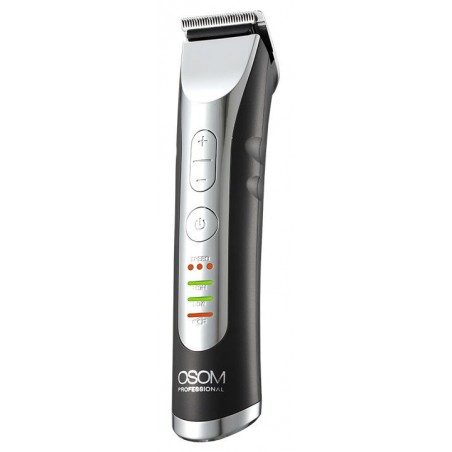 „OSOM Professional“ profesionali plaukų kantavimo mašinėlė–trimeris „Hair Trimmer“ yra patvari, ergonomiška ir patogi. Mašinėlė turi integruotą didelės talpos, ilgaamžę LiFePo4 bateriją, kuri padės prietaisui veikti iki 3 val. pilna įkrova. Šią mašinėlę lengvai ir greitai įkrausite įkrovimo stovelyje vos per 1 val. Prietaisas pasižymi veikimo greičio reguliavimu tarp 5000 – 5500 – 6000 aps./min. Pridedamos 1,5 – 3 – 4,5 – 6 mm ilgio papildomos šukutės.