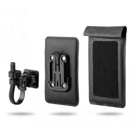 Laikiklis skirtas specialiai mobiliajam telefonui tvirtinti prie dviračio, el. dviračio ar paspirtuko vairo. Dėklas pasižymi 100% apsauga nuo vandens ir yra liečiamas pirštu, todėl telefonu saugiai galėsite naudotis net esant darganai, nebijodami jo sušlapinti. Pagaminta iš neperšlampančio nailono ir plastiko.