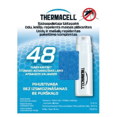„Thermacell” užpildymo paketą sudaro: 12 repelento plokštelių ir 4 butano dujų balionėliai. Skirta nešiojamam uodų repelentui Thermacell „Mosquito & Midge Repeller” MR-300G.