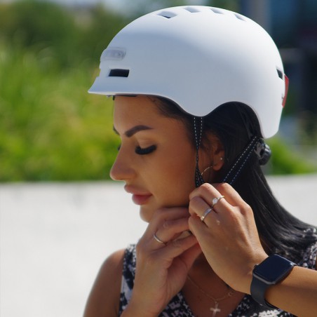 Modernus aukštos kokybės šalmas su LED lemputėmis priekyje ir gale leis kelyje jaustis visiškai saugiai. Šalmas puikiai tiks važiuojant paspirtuku, dviračiu, el. dviračiu, riedlente ar riedučiais. Šalmas užtikrina maksimalų komfortą ir turi vėdinimo angas, kurios neleis galvai perkaisti net karštą dieną. Dėvėdami šį šalmą užtikrinsite saugumą važiavimo metu. Kokybiška vidinė EPS danga efektyviai sušvelnina smūgį kontakto metu ir yra itin patogi.