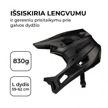Šis „Beaster“ šalmas išsiskiria lengvumu ir geresniu prisitaikymu prie galvos dydžio, o kokybiška vidinė EPS danga efektyviai sušvelnina smūgį kontakto metu ir užtikrina maksimalų komfortą dėvėjimo metu.