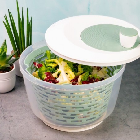 Ši salotų džiovyklė sukurta ne tik salotų džiovinimui. Dėl integruoto pripildymo ir nusausinimo mechanizmo, joje taip pat galima plauti salotas.