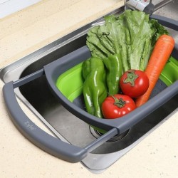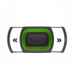 Šis koštuvas puikiai tinka tiek vaisių ir daržovių plovimui, tiek makaronų ar kitų produktų nusausinimui. Jo konstrukcija leidžia jį naudoti virš kriauklės, o ištraukiamos rankenos prisitaiko prie įvairaus pločio paviršių.