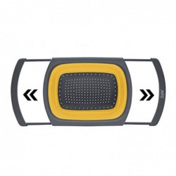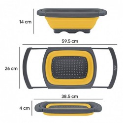 Šis koštuvas puikiai tinka tiek vaisių ir daržovių plovimui, tiek makaronų ar kitų produktų nusausinimui. Jo konstrukcija leidžia jį naudoti virš kriauklės, o ištraukiamos rankenos prisitaiko prie įvairaus pločio paviršių.